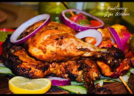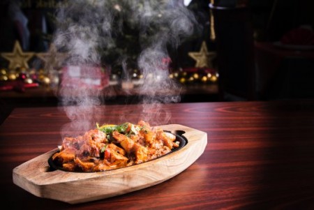 Vegetarian meals served with Basmati rice. (V) = Vegan